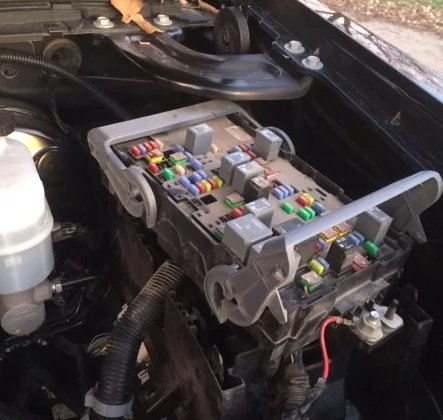 Під капотом автомобіля головний блок запобіжників і реле розташований з лівого боку моторного відсіку та закритий захисною кришкою.